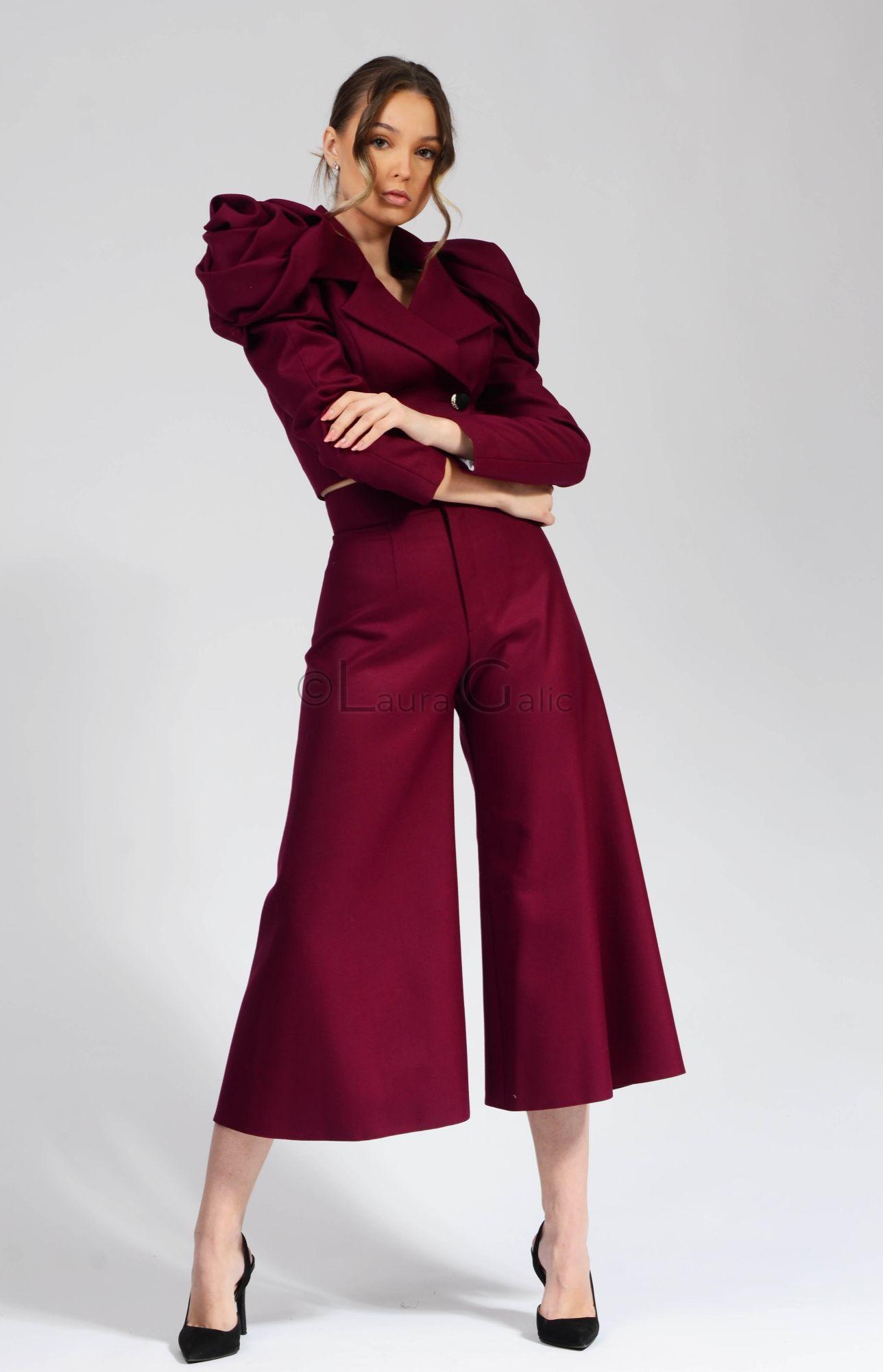 Costum Alegria 1 cu pantaloni 3/4 (Costum Alegria 1, stofa lina 100%, umeri supradimensionati, pantaloni trei sferturi clopot)