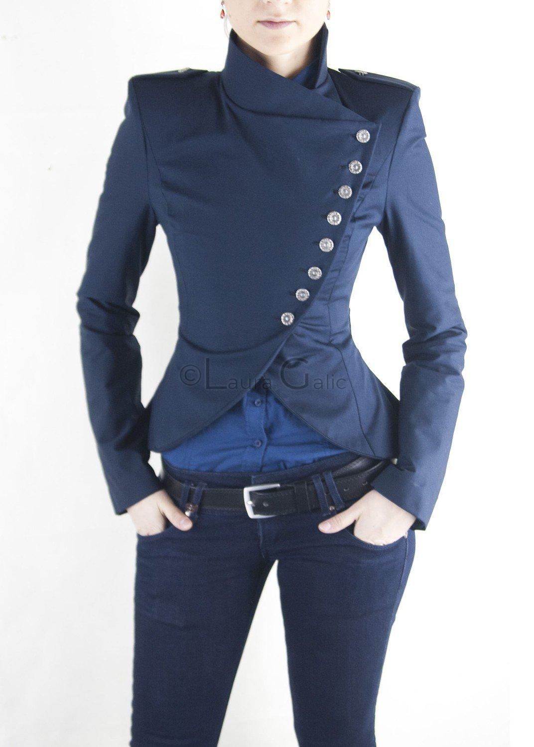 Sacoul Dina este o piesa de inspiratie militara care imbina stilul office cu accente indraznete. Inchiderea se realizeaza cu nasturi butoni aurii sau argintii, dupa plac. Materialul este o stofa de inalta calitate cu o compozitie variabila de la un material la altul. Acestea oscileaza de la minim 56% lana sau bumbac la chiar 100% depinzand de nuanta dorita. Materialul este dublat cu insertie pe baza de bumbac sau hartie pentru a asigura o forma optima la purtare. Recomandam doar spalare chimica pentru a inlatura orice risc de deteriorare.
