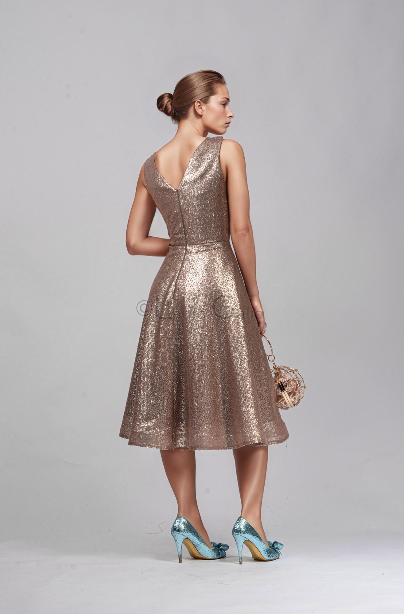 Rochie midi Lolita paiete, inchidere fermoar spate
