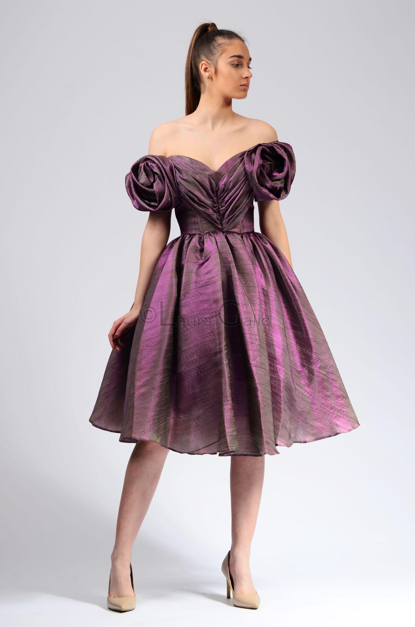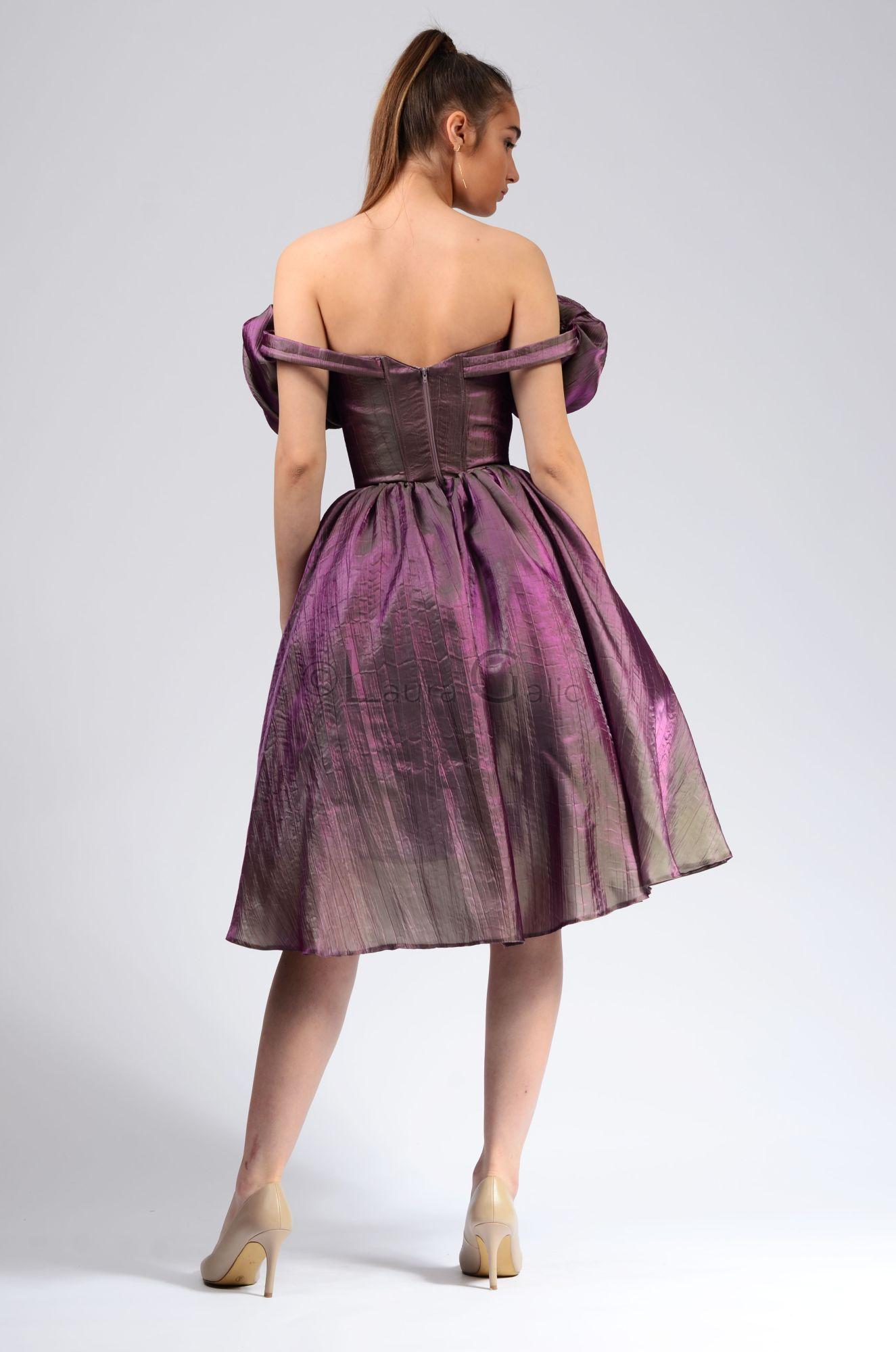 Rochie corset inimioara cu bretele lasate (Rochie Selena, Tafta plisata cameleon)