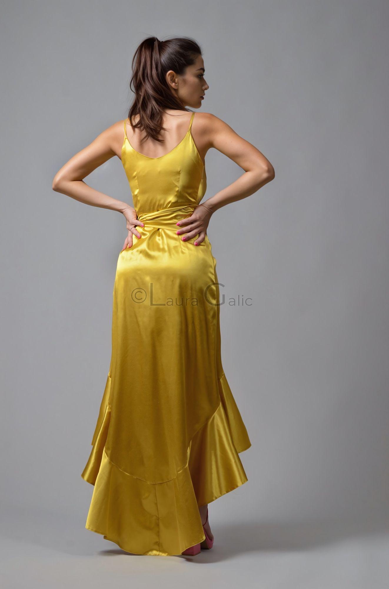 Rochie Chiara 4, esarfa lata (Rochie Petrecuta lunga, tafta bumbac satinata, prindere reglabila cordon)