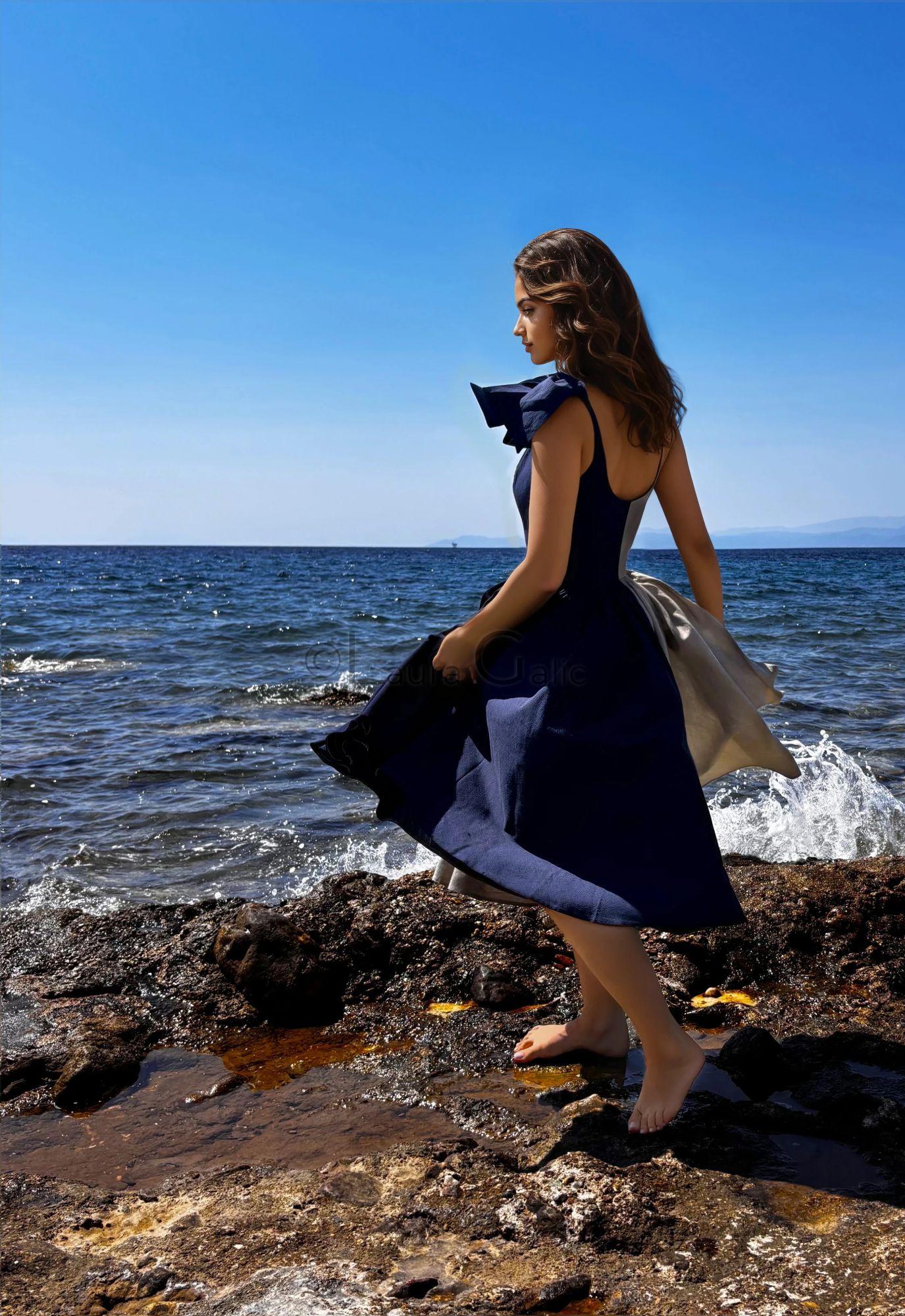 Rochie Afrodite cu bretele reglabile, corset cu balene, in natural 100%, închidere nasturi fata, lungime fusta 70cm, combinație culori la alegere