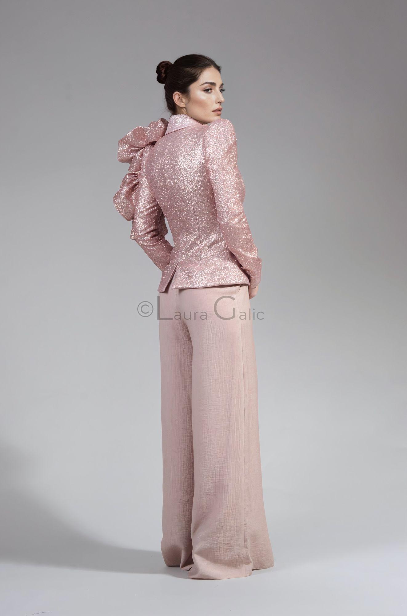 Adaugă un plus de rafinament garderobei tale cu acest sacou de damă elegant, creat cu grijă în atelierele Laura Galic. Potrivit atât pentru ținute office, cât și pentru evenimente speciale sau ocazii formale, acest sacou este alegerea perfectă pentru femeile care își doresc un look sofisticat și feminin.